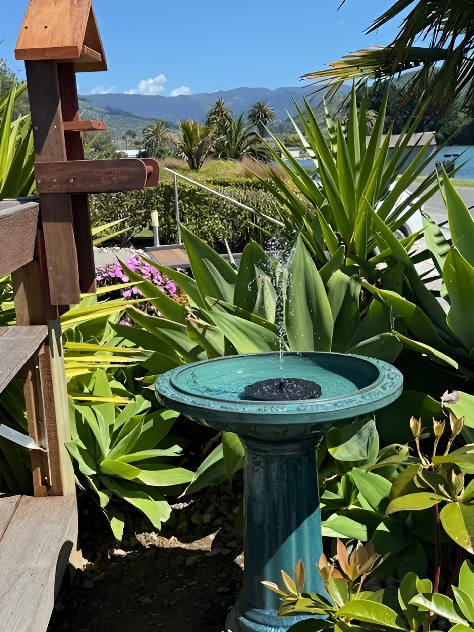 As soon as sunlight hits the panel, a graceful stream of water begins to dance — inviting birds, adding serenity, and bringing your outdoor space to life.